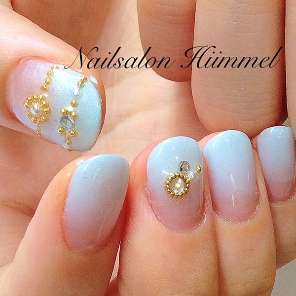 水色、白、透明の三色を使ってグラデーションをすることで爽やかで涼し気な可愛らしいネイル♡