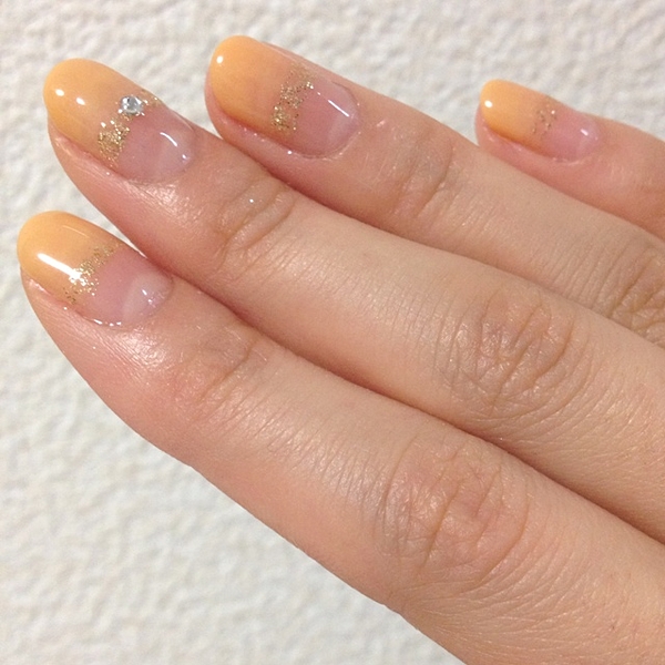 少し濃いオレンジカラーは透明だけでなく黄色とのグラデーションにも使える!