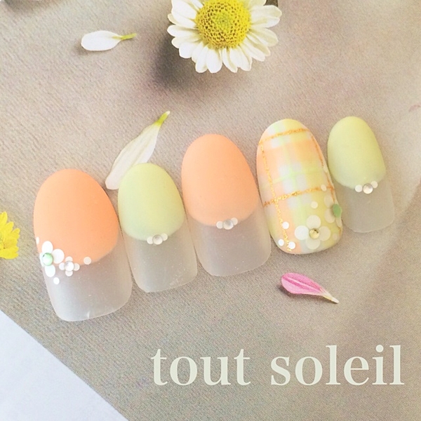 パステルなマットカラーと透け感が、可愛らしさを出してくれますね。