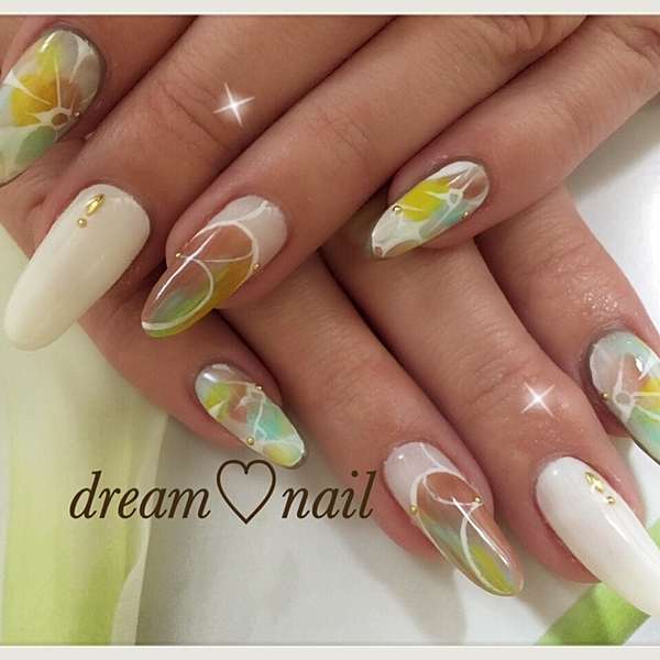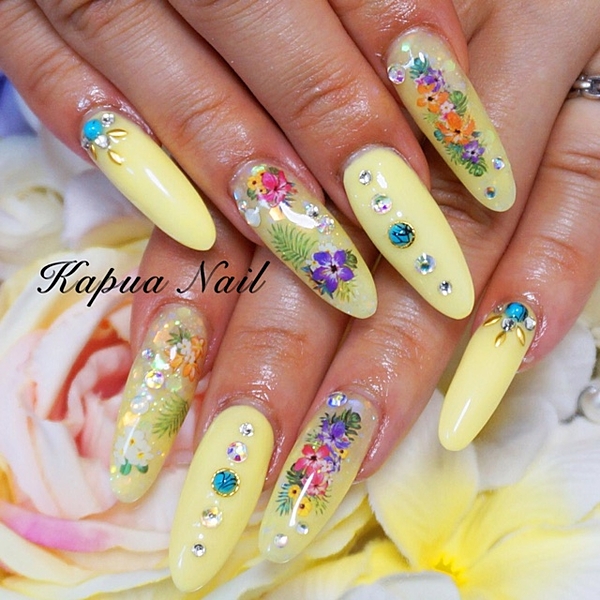 パッと明るく!南国イメージのイエロー&オレンジネイル♪