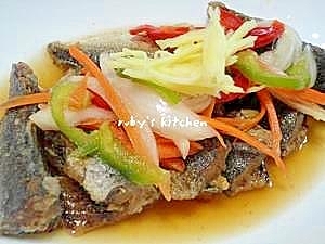 楽天レシピ:「揚げないでも出来た(^_^)v あじの南蛮漬け 」より