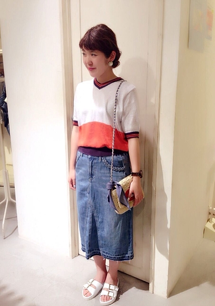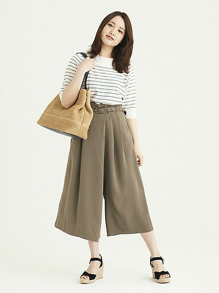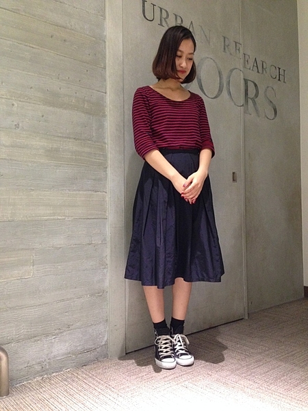 カットソーというカジュアルアイテムですが、今年トレンドの膝丈スカートなどに合わせて女性らしい印象のコーディネートを楽しんでください。