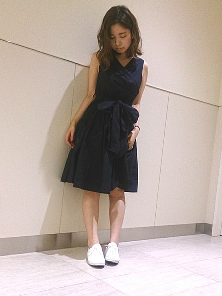 ネイビーのシャツワンピース×ホワイトシューズなら年上彼とのデートでも♡