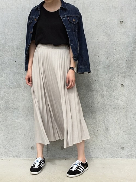 人気のミモレ丈のプリーツスカート。動くたびにふわりと揺れて立体感と柔らかさを出してくれるスカート◎ホワイト・ブラック・イエローの3色があります♡