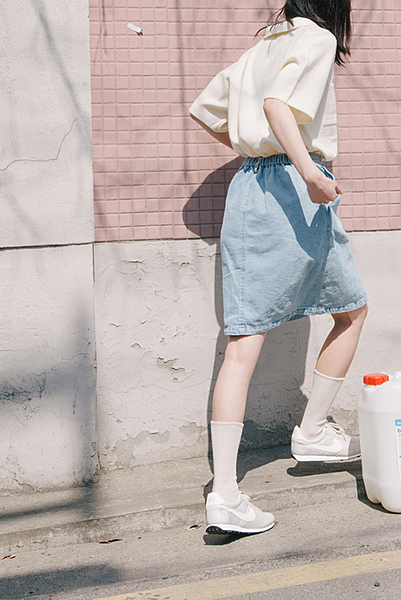 夏に大活躍間違いなしのブッチャー素材のスカート。シンプルな素材なのでトップスを選ばずに着ることができます◎ホワイト・グリーン(2色あり)・ブルーの4色があります♡