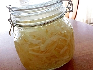 振ると、タマネギから余分な水分が出て酢が浸透しやすくなります。