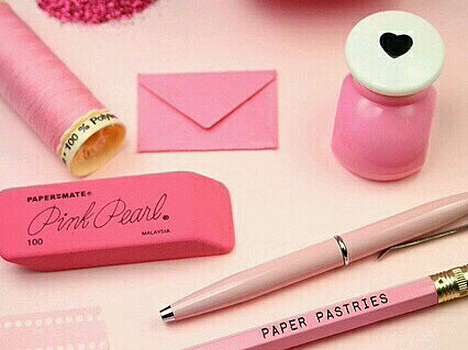 ①白い紙とピンク色のペンを用意。