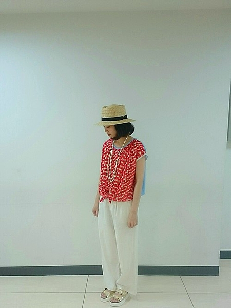 ホワイトパンツと合わせたらとってもオシャレでリラックス感のあるコーディネートに。