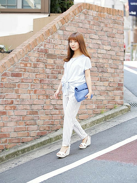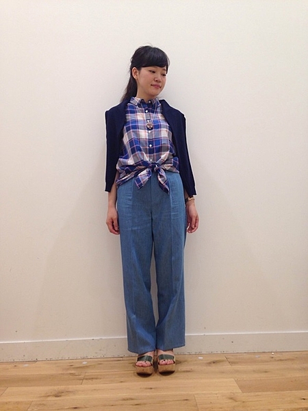 淡い色のボトムスなら濃い色を合わせてあげればメリハリができて自然とウエストが高くみえちゃうんです。
