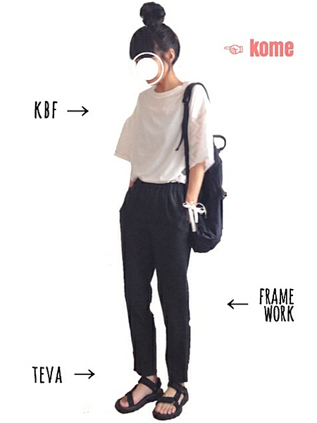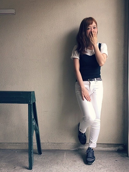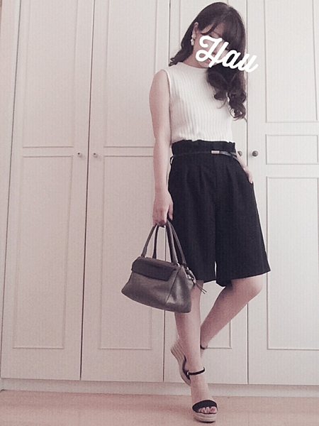 ▽トップス:白 × ボトムス:黒▼