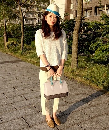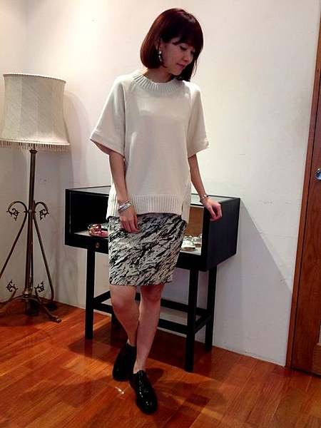 袖ありサマーニットは薄い色合いのものを選んで爽やかに☆