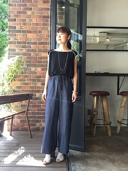 単色ワイドパンツはトップスでトレンド感を☆