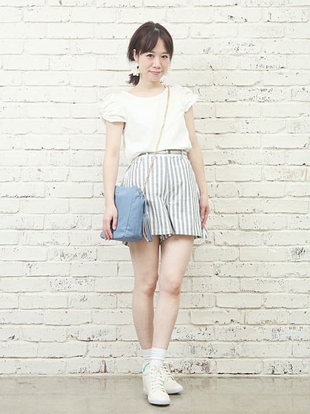 このねじり袖トップスを使ったキュートな着こなしを紹介します♩