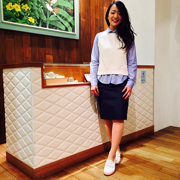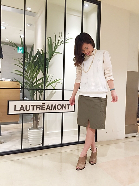 通勤には、サファリテイストのスカート合わせがおススメ。