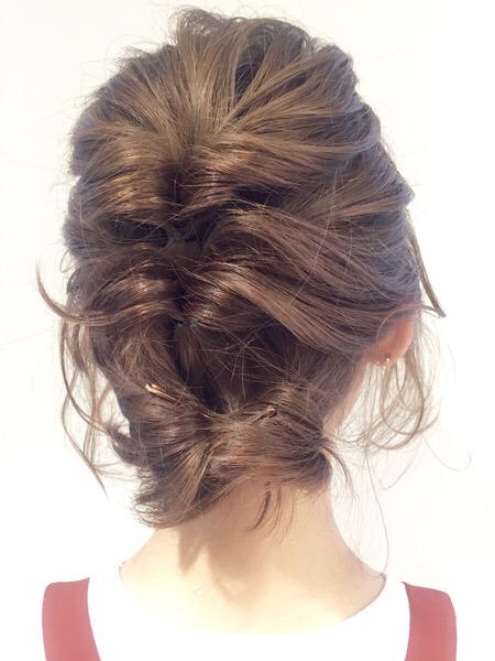 出典:https://locari.jp/ こちらのハーフアップは2段に分けたツイストをとめたアレンジです。ツイストすることで短い髪の毛もまとめやすくなります。あまりきっちりせずに、ルーズに仕上げるのがポイントです。最初はきっちりとめてから指でつまんで崩すといい感じになります。