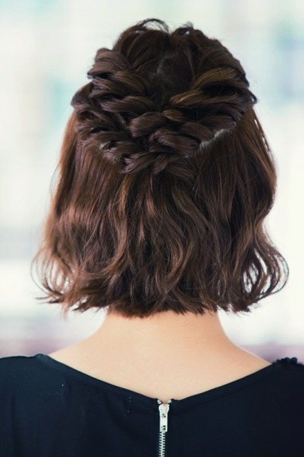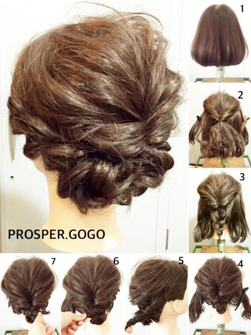 出典:https://www.pinterest.com/ こちらは手順付きで分かりやすいですね。仕上がりはとっても凝って見えます。トップの毛をくるリンパにして毛先を三つ編みにします。トップはつまんで引っ張りだし、ボリュームを出します。おろしておいた両サイドの髪は、バックに向かってツイストしていきます。サイドは編み込みにしてもいいですね。ツイストしていくと短い毛がしまいやすくなります。