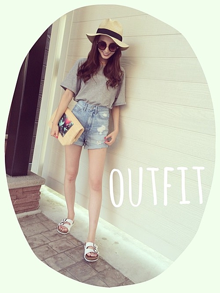 こちらのコーディネートはトップスもさほど甘くはないけど、ハットとクラッチバック、ショートパンツっていうチョイスが甘さを引き立てるね♡