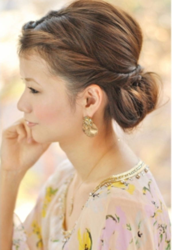 出典:http://hairstyle-channel.net 一見するとどうなってるの?なスタイルですが意外と簡単! ①ひとつにまとめて毛先を輪に結びます。 ②結び目の上を分けてポケットを作り、①の髪をしまいこむように中に入れます。 ③前髪からサイドまで編み込みし、毛先まで三つ編みしておいた毛束の毛先を同じようにポケットにしまいこんで、最後にポケットを閉じるようにピンでとめて完成。 エレガントで上品なスタイルで、華やかなドレスと合わせるお呼ばれシーンや花嫁さんの髪型にもぴったりです。