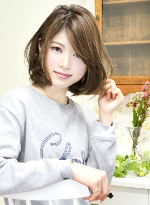 出典:http://www.hairmake-happiness.com/ こちらはデジタルアクアパーマで作っている大人キュートなゆるふわボブです。コテの熱が苦手な髪質の方、ロングに伸びかけのミディアム丈の方にもおススメです。適度な長さがあるので耳かけ、スタイリングによるニュアンスで色んなアレンジが楽しめます。