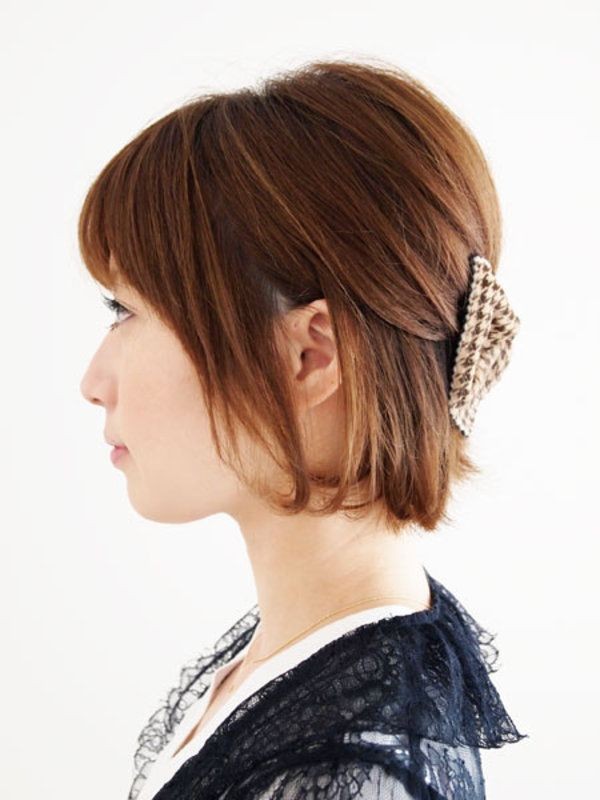 出典:http://www.elle.co.jp/ 上のゴム部分にリボンバレッタ留めしたアレンジです。バレッタを襟足近くのダウンした位置に留めると、子どもっぽくならず、大人のフェミニンな印象に。きれいに立体感のある頭のシルエットが作れる、おススメの時短アレンジです。