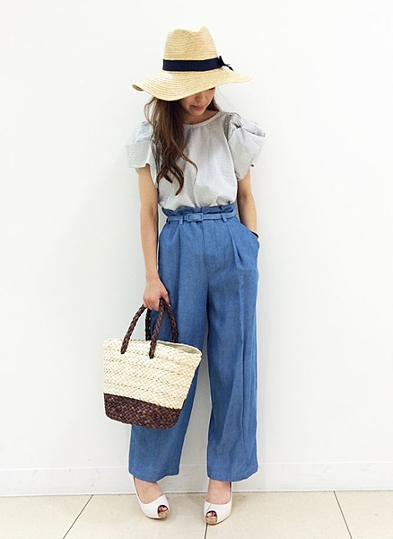 トレンドのデニムガウチョパンツ♡下半身すっきり着こなし術♪
