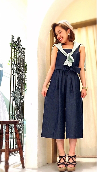 胸元にキラキラ光るビジューが可愛いサロペットガウチョ!