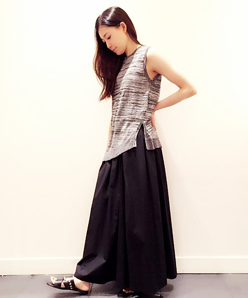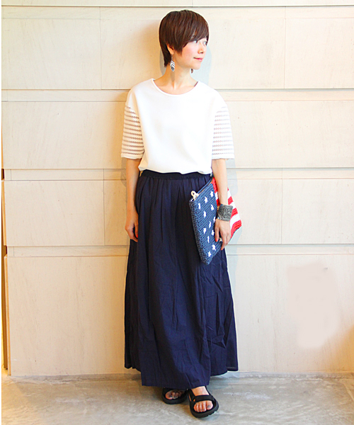 気になるレッグラインをカバーしつつ、品良く着こなせるミモレ丈も◎ 秋にも大活躍しそう。