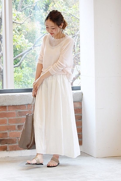 たっぷりとした丈でフラットサンダルに合わせれば、大人のリラックススタイルが完成します。