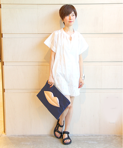 ドビー素材の2WAYマキシスカート。同色で立体感のあるドットが、暑い季節に涼しい印象に。マキシスカートとしてだけでなくm、ベアワンピとしても、2Wayの着こなしが楽しめます。