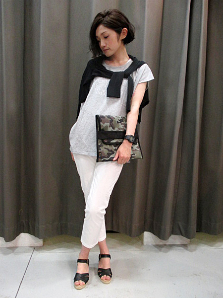 シャツは腰に巻くだけでカジュアルなスタイルに。
