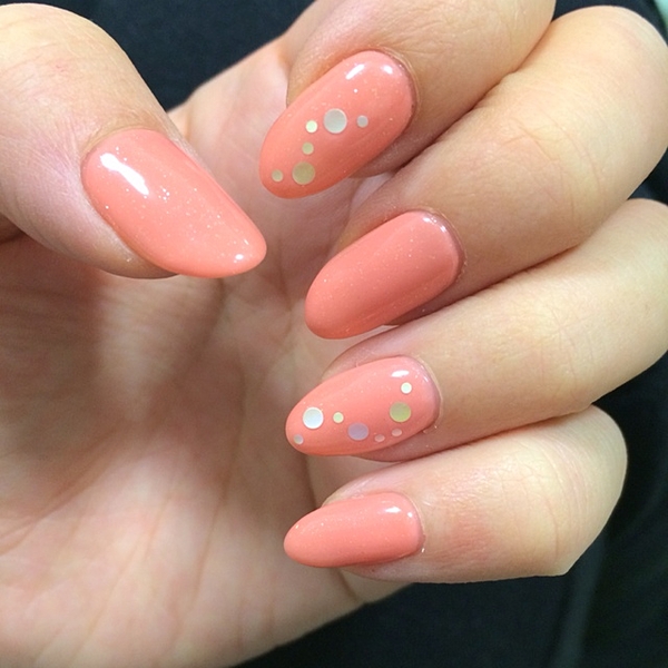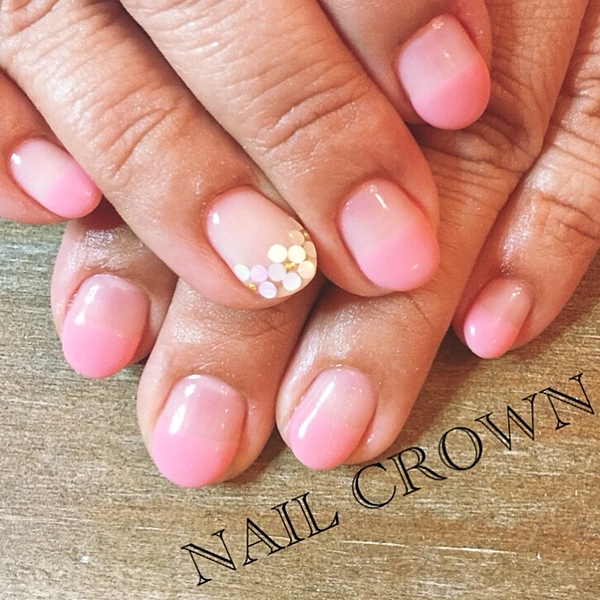 根元にゴールドスタッズやストーン、ホロをのせてキラキラ華やかさがエレガントです♡