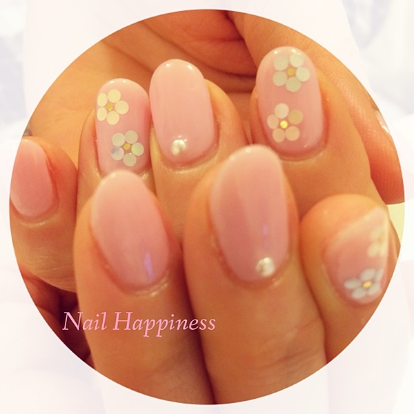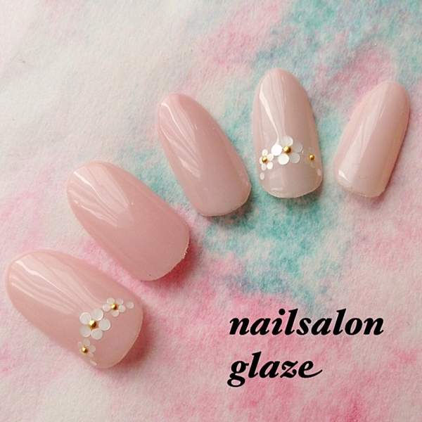 ホワイトやブルーのお花をのせて、さわやかでかわいいネイルに♡