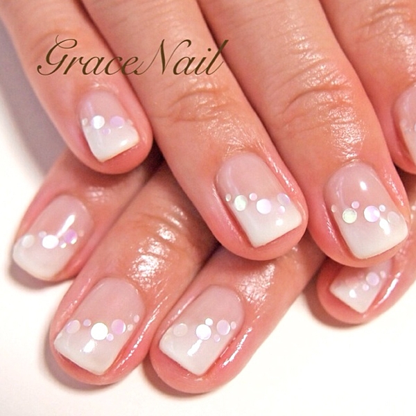 ホワイトホロのお花をいっぱい詰め込んでフレンチにした指がポイントです♪