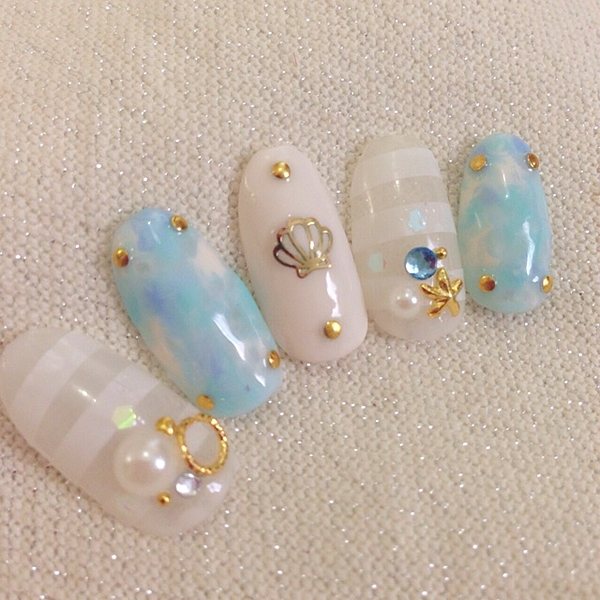 New Nailめちゃ気に入ったあほんとにかわいい夏っぽくブルーいつもありがとおございます #ネイル#ブルー#シェル#ジェル https://t.co/Ni9Krfw1PT http://t.co/mRg3cYX7vR