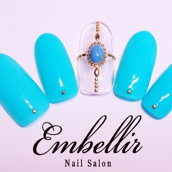 ゴールドスタッズやホワイトアート、ブルーのストーンで夏らしさ全開に♪