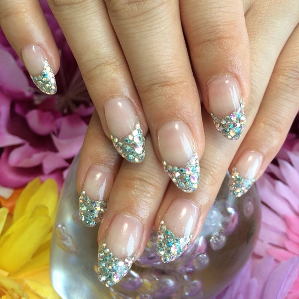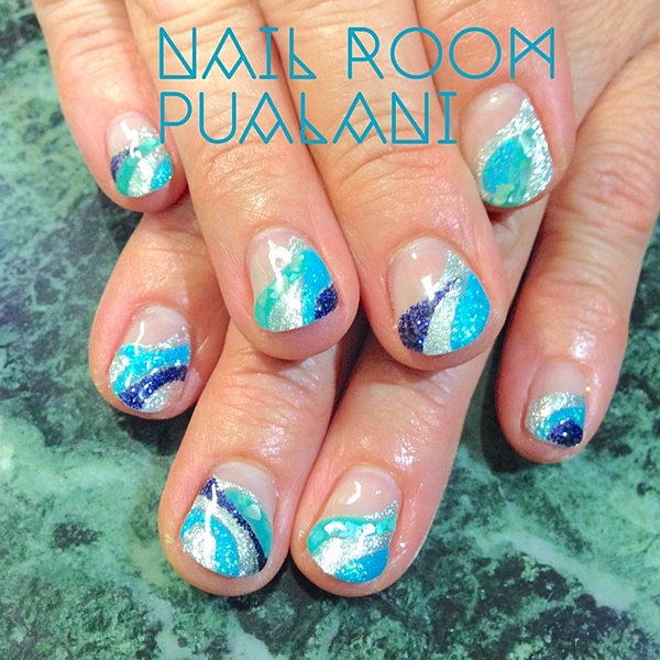 さわやかなブルーでななめフレンチにして、シルバーラメをプラス♪