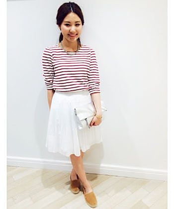 ■ストライプ✖️白スカートのコンビアイテムはこれ!