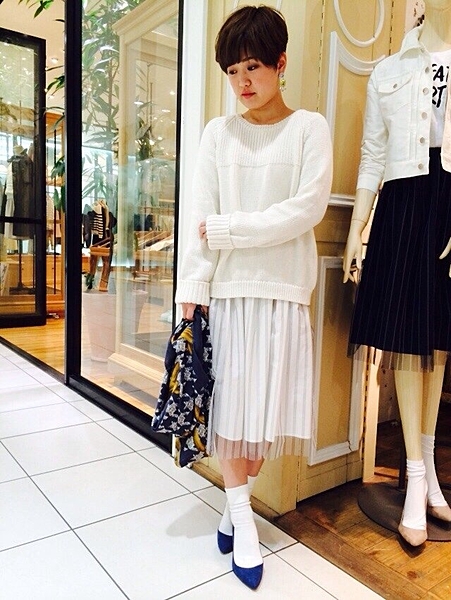 シースルーのホワイトスカートは全身ホワイトコーデに異素材を組み合わせてくれる万能アイテム☆