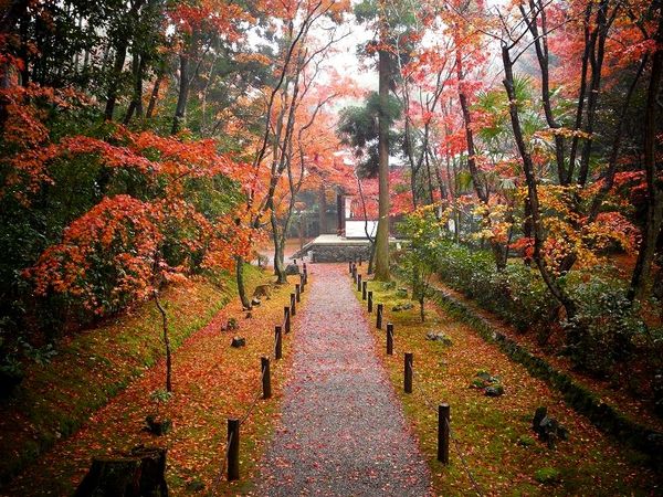 広大な敷地の中には、紅葉した落ち葉の絨毯が広がります。