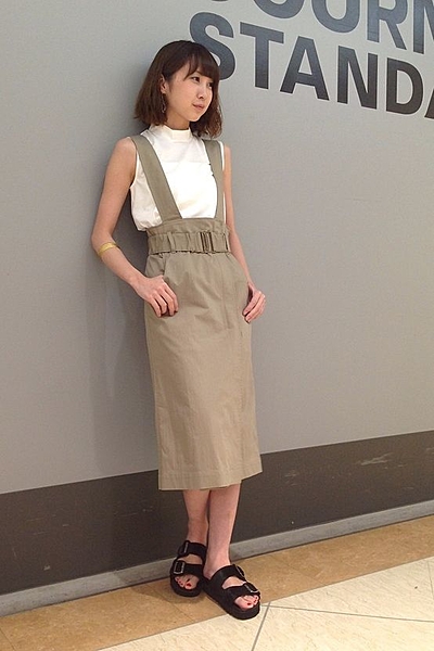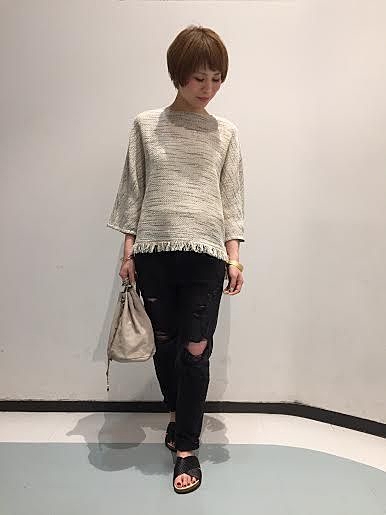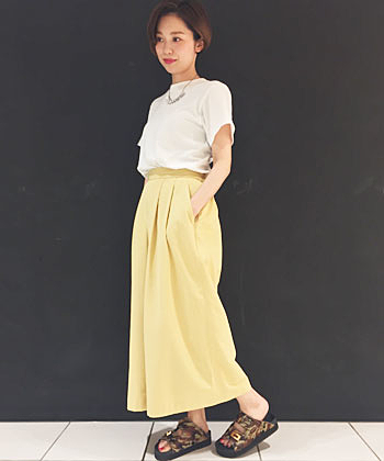 ワンピースやカチッとしたパンツ等とあえて合わせるのがおススメ。