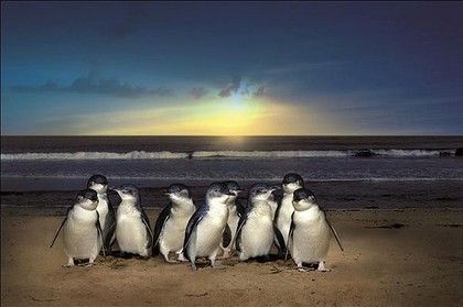 日没頃、海から陸にあがってくるフェアリーペンギンたちが、