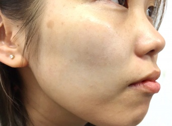 フェイスラインにできたにきびも赤みが引くと、それだけで美肌に見えます。