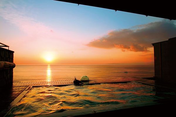 まるで海と温泉が繋がっているかのような景色が眺められます。
