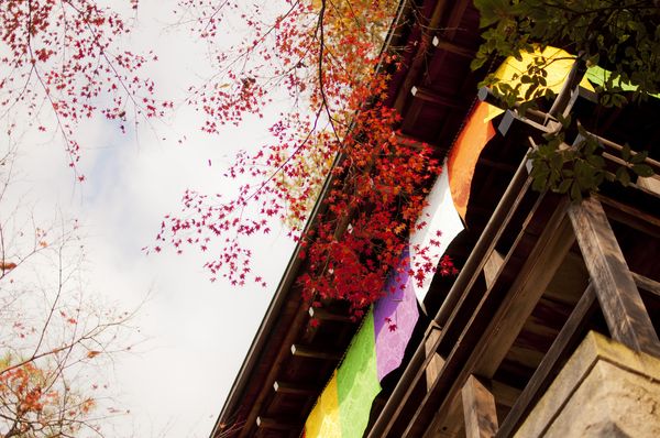 秋、もみじの美しい一軒のお寺。