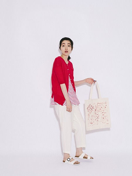 暑そうに見えがちな赤を夏に着るなら、