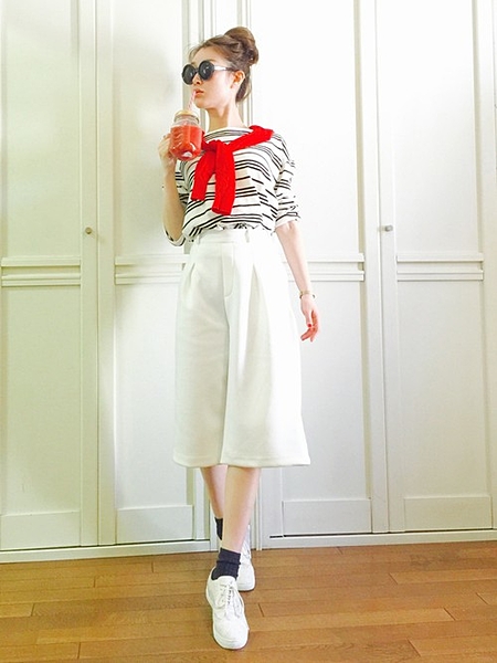 ホワイト×ボーダー×レッドで王道マリンコーデ♡