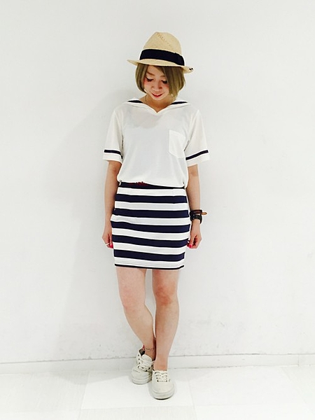 タイトスカートにセーラー風のトップスで上級者コーデ♡