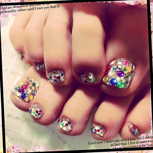ホロの埋め尽くしで最大まで 埋め尽くしたインパクトと 可愛さが半端なぃフットネイル 夏はやっぱり派手なキラキラが 目をひきますね❤️ http://t.co/iB4mZMvIO6