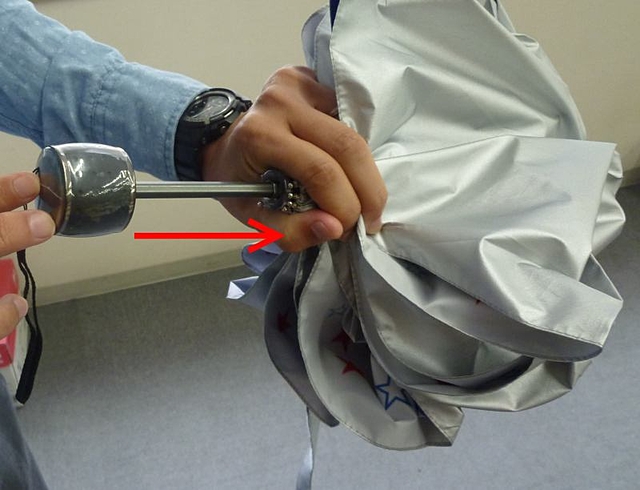 傘を持ち、留め具のついた部分から
