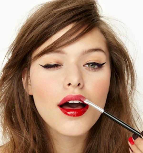 リップブラシをつかってルージュなどを塗る、